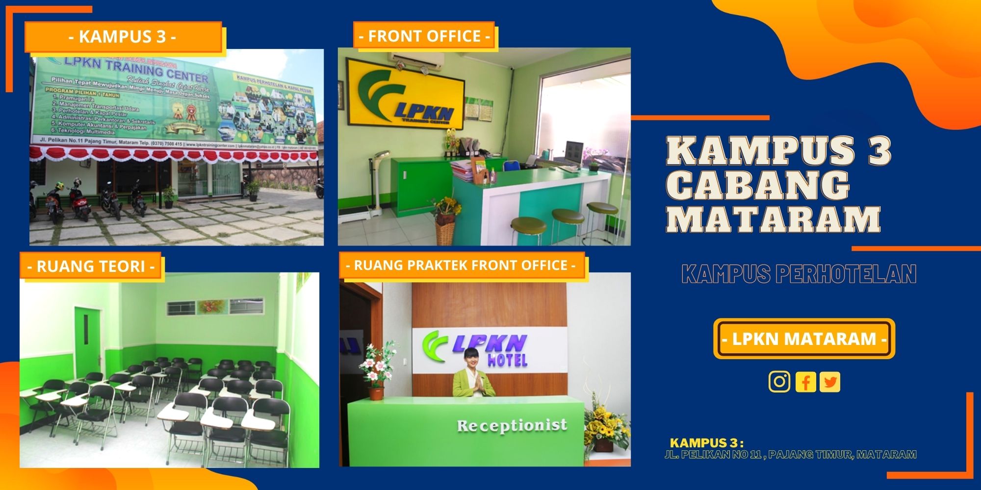 Terletak di tengah Kota Mataram, dengan banyak pilihan alat transportasi untuk menuju Kampus LPKN.