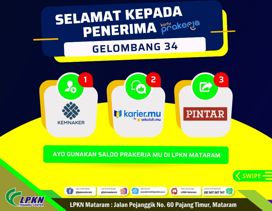 Ayo gunakan saldo prakerjamu di LPKN Training Center Mataram